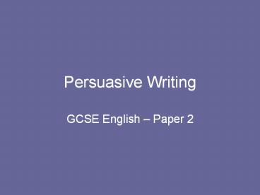 <Notice: Removed> Persuasive Writing PowerPoint PPT Presentation