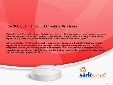 1 GeNO, LLC - Product Pipeline AnalysisMarket
