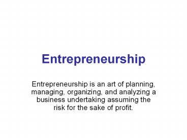 - Entrepreneurship is an art of planning, managing,