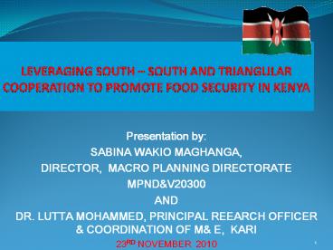 COOPERATION TO PROMOTE FOOD SECURITY IN KENYA