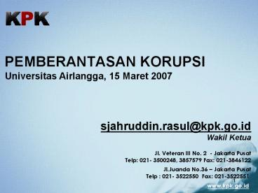 <Notice: Removed> PEMBERANTASAN KORUPSI PowerPoint PPT Presentation