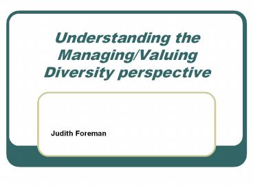 Title: Understanding the Managing/Valuing Diversity perspective