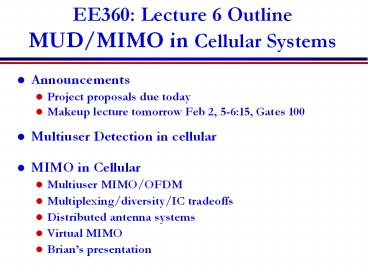 <Notice: Removed> EE360: Lecture 6 Outline MUD/MIMO in Cellular Systems PowerPoint PPT Presentation
