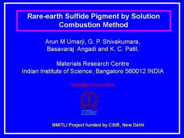 1 Rare-earth Sulfide Pigment by Solution Combustion