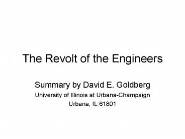 The Revolt of the Engineers PowerPoint PPT Presentation