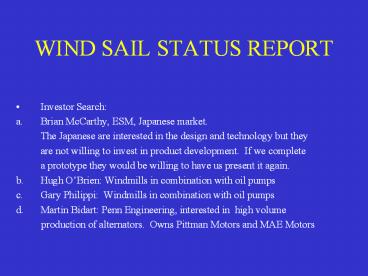 <Notice: Removed> WIND SAIL STATUS REPORT PowerPoint PPT Presentation