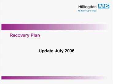 admissions at Hillingdon Hospital - Produce LDP and financial plan for 07/08 to