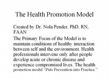 <Notice: Removed> The Health Promotion Model PowerPoint PPT Presentation