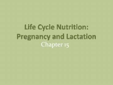 Title: Life Cycle Nutrition: Pregnancy and Lactation