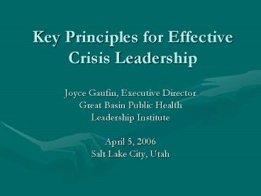 with their local Incident Command System - Crisis Leadership Cycle Before, during, and