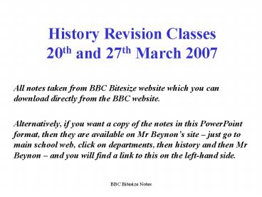 <Notice: Removed> History Revision Classes 20th and 27th March 2007 PowerPoint PPT Presentation