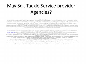 1May Sq . Tackle Service provider Agencies?