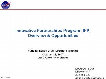 <Notice: Removed> Innovative Partnerships Program (IPP) Overview & Opportunities PowerPoint PPT Presentation