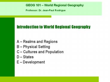 Introduction to World Regional Geography PowerPoint PPT Presentation