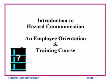 <Notice: Removed> Introduction to Hazard Communication An Employee Orientation & Training Course PowerPoint PPT Presentation