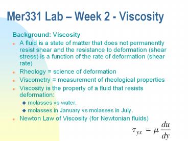 1Mer331 Lab Week 2 - Viscosity