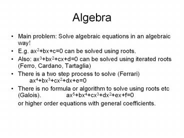 roots etc (Galois). ax5bx4cx3dx2exf0