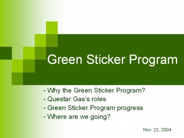 <Notice: Removed> Green Sticker Program PowerPoint PPT Presentation