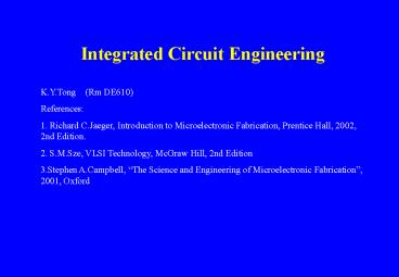 1Integrated Circuit Engineering K.Y.Tong (Rm