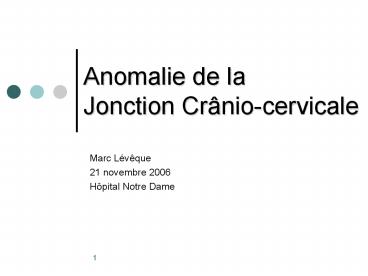 Title: Anomalie de la Jonction Crвnio-cervicale
