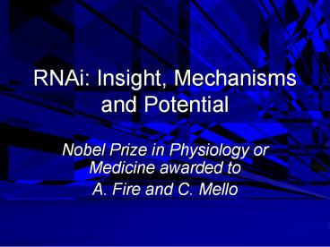 Title: RNAi: Insight, Mechanisms and Potential