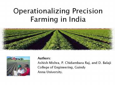 <Notice: Removed> Operationalizing Precision Farming in India PowerPoint PPT Presentation
