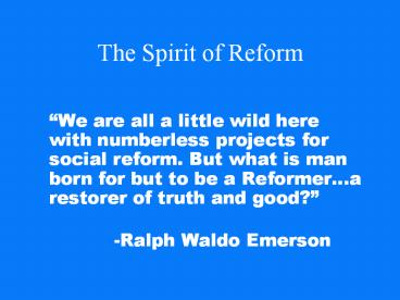 a Transcendentalist? - As a Reformer? (hint note his beliefs concerning