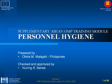 SUPPLEMENTARY ASEAN GMP TRAINING MODULEPERSONNEL