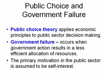 <Notice: Removed> Public Choice and Government Failure Public choice theory PowerPoint PPT Presentation
