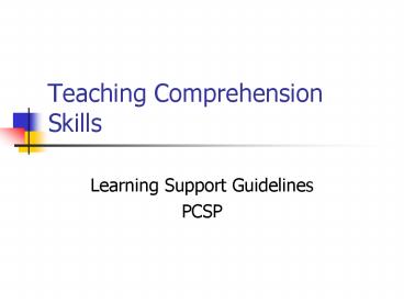 Teaching Comprehension Skills PowerPoint PPT Presentation