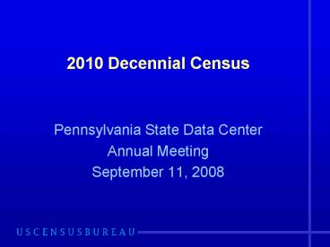 <Notice: Removed> 2010 Decennial Census PowerPoint PPT Presentation