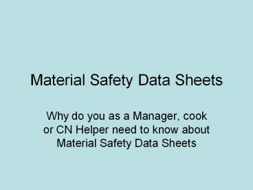 Material Safety Data Sheets PowerPoint PPT Presentation