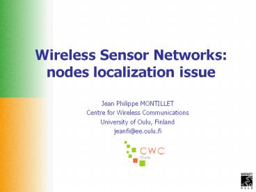 <Notice: Removed> Wireless Sensor Networks: nodes localization issue PowerPoint PPT Presentation