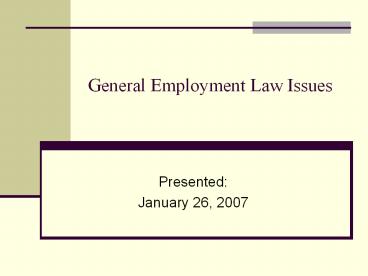 <Notice: Removed> General Employment Law Issues PowerPoint PPT Presentation