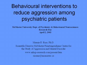 Title: Behavioural interventions to reduce aggression among psychiatric patients