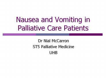 Title: Nausea and Vomiting in Palliative Care Patients Dr Nial
