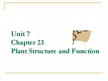 Title: Unit 7 Chapter 23 Plant Structure and Function