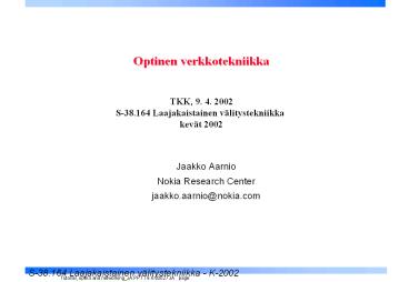 Title: Optinen verkkotekniikka