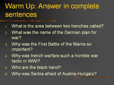 Warm Up Answer in complete sentences