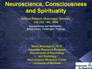1Neuroscience, Consciousness and Spirituality