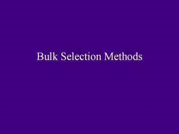 <Notice: Removed> Bulk Selection Methods PowerPoint PPT Presentation