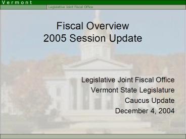 Title: Fiscal Overview 2005 Session Update