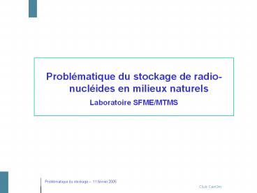 Title: Probl matique du stockage de radio-nucl ides en milieux