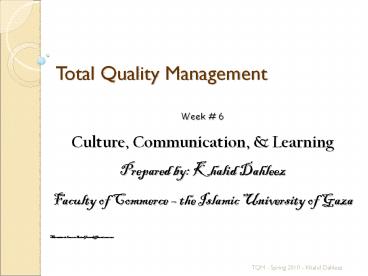 <Notice: Removed> Total Quality Management PowerPoint PPT Presentation