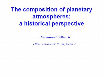 Titan) - Secondary atmospheres (CO2 / N2, N2 / O2, N2 /