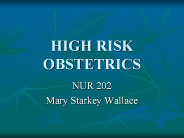 Title: HIGH RISK OBSTETRICS