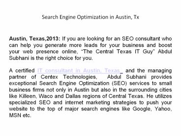 Search Engine Optimization in Austin, Tx PowerPoint PPT Presentation