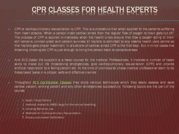 CPR Classes for Health Experts PowerPoint PPT Presentation