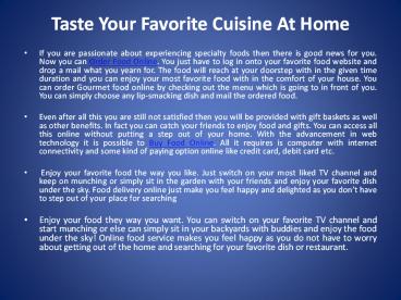 Taste Your Favorite Cuisine At Home PowerPoint PPT Presentation