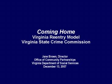 • Virginia Reentry Model